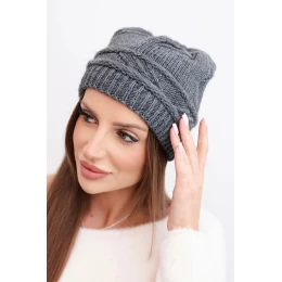 Dámská zimní čepice z vlny a s pleteným vzorem K428 grafitová
