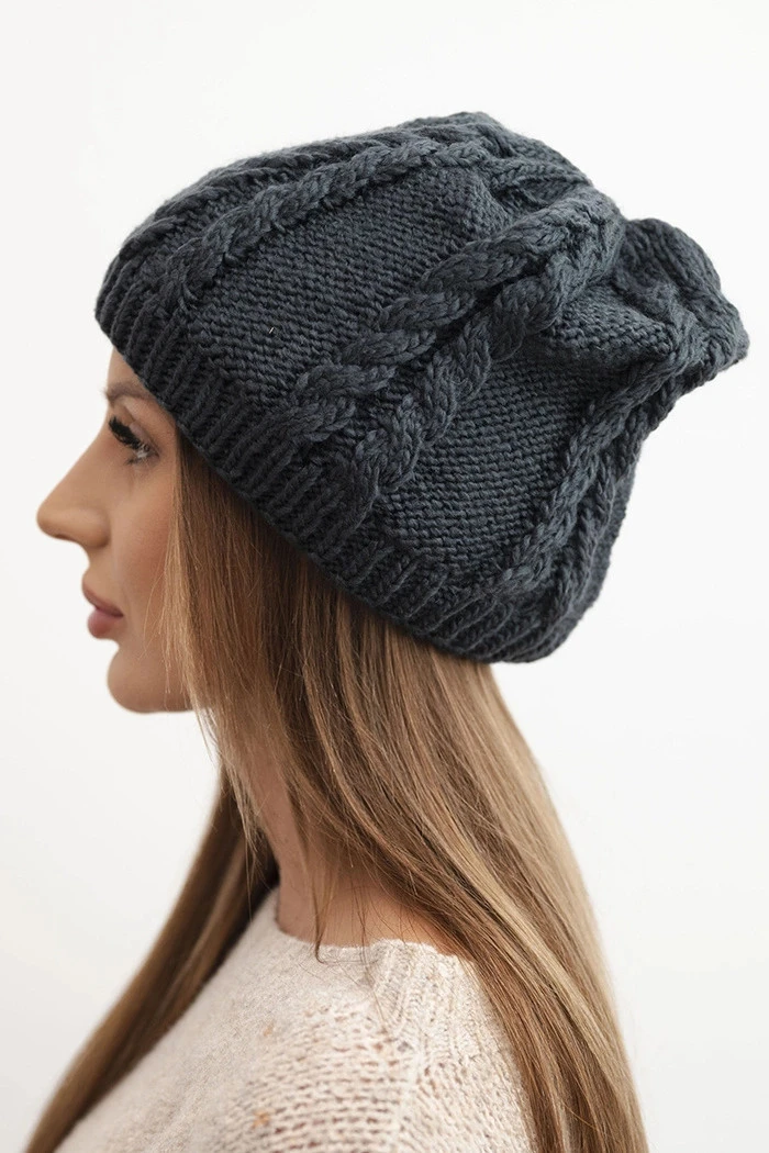 Přidání recenze k Dámská zimní čepice z vlny s copánkovým vzorem K452 grafitová