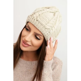 Dámská zimní čepice z vlny s copánkovým vzorem K452 tmavě béžová