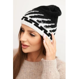 Přidání recenze k Dámská zimní čepice z vlny s geometrickým vzorem a kamínky K469 černá