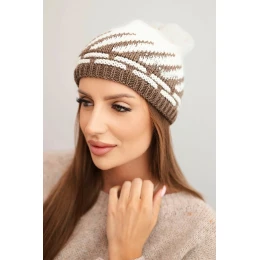 Dámská zimní čepice z vlny s geometrickým vzorem a kamínky K469 ecru