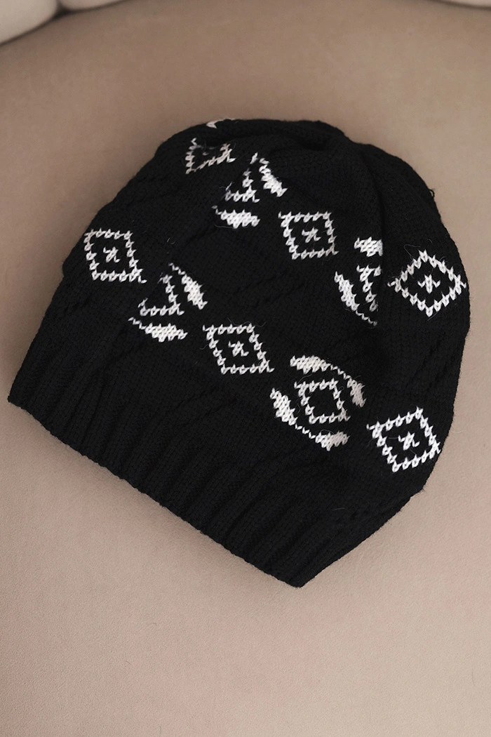 Dámská zimní čepice z vlny s geometrickým vzorem model 21867912 černá + bílá - K-Fashion