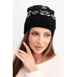 Přidání recenze k Dámská zimní čepice z vlny s geometrickým vzorem model 21867912 černá + bílá - K-Fashion