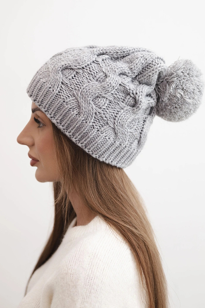 Dámská zimní čepice z vlny s hrubým copánkovým vzorem K458 šedá