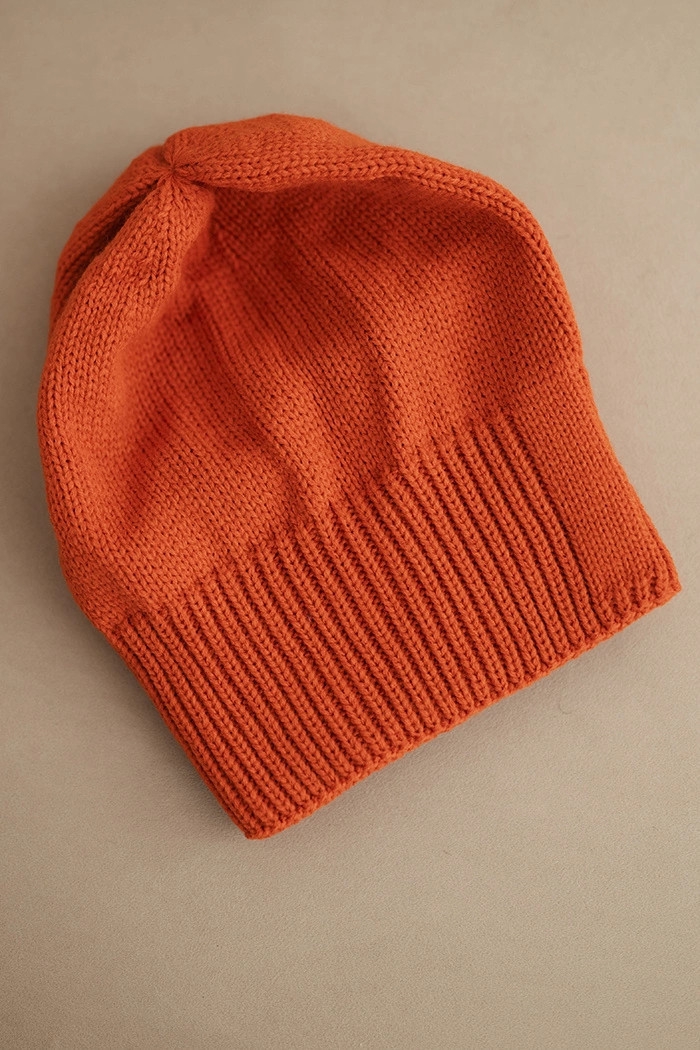 Dámská zimní čepice z vlny s klasickým ribovým vzorem K444 oranžová