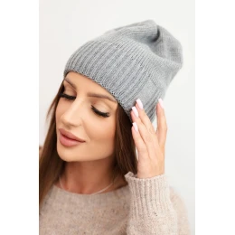 Dámská zimní čepice z vlny s klasickým žebrovaným vzorem K444 šedá