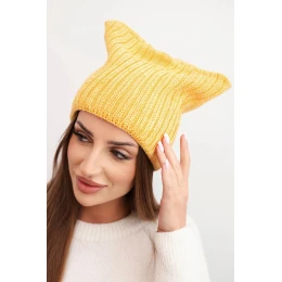 Dámská zimní čepice z vlny s kočičím střihem z žebrované pleteniny K419 žlutá