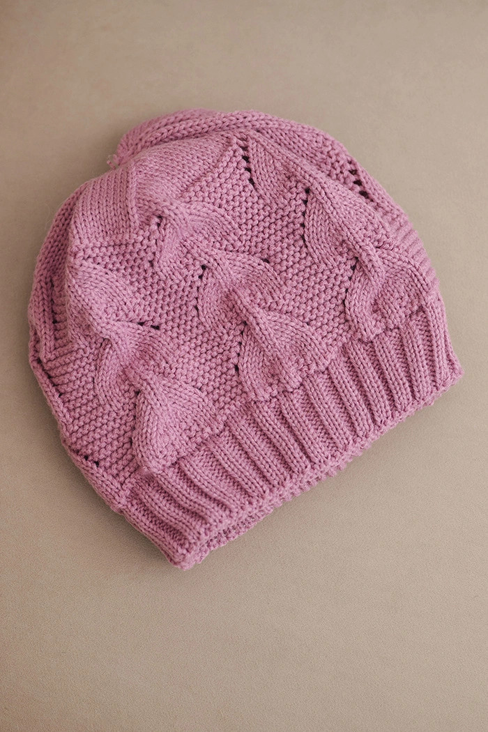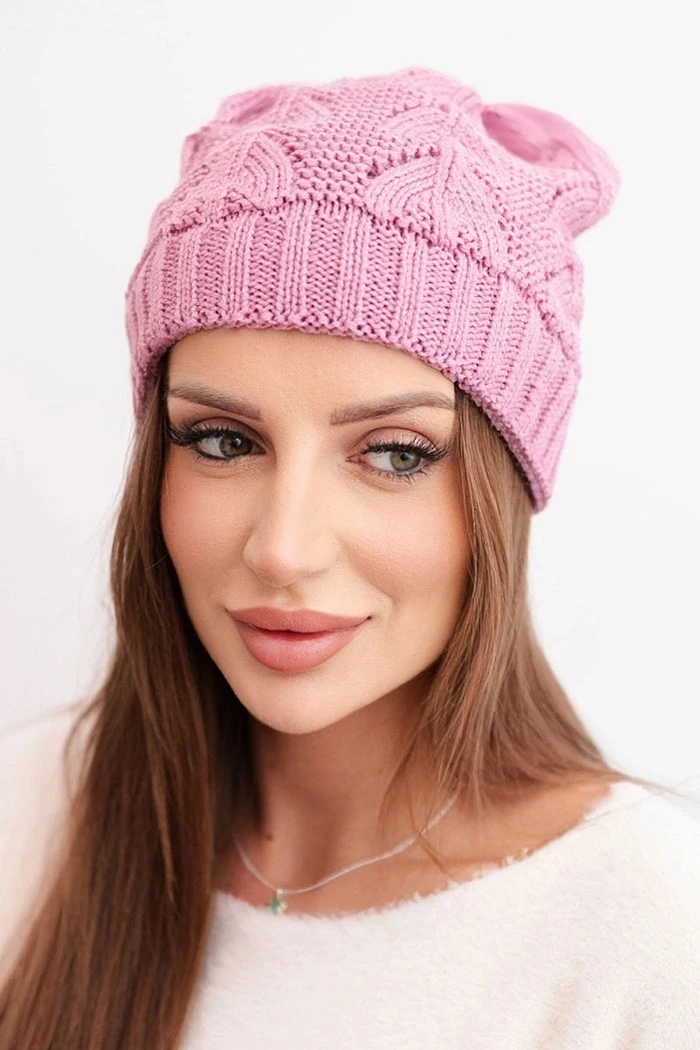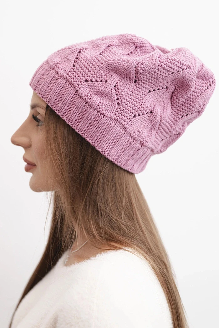 Dámská zimní čepice z vlny s krajkovým vzorem model 21817803 tmavě růžová - K-Fashion