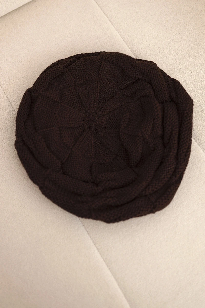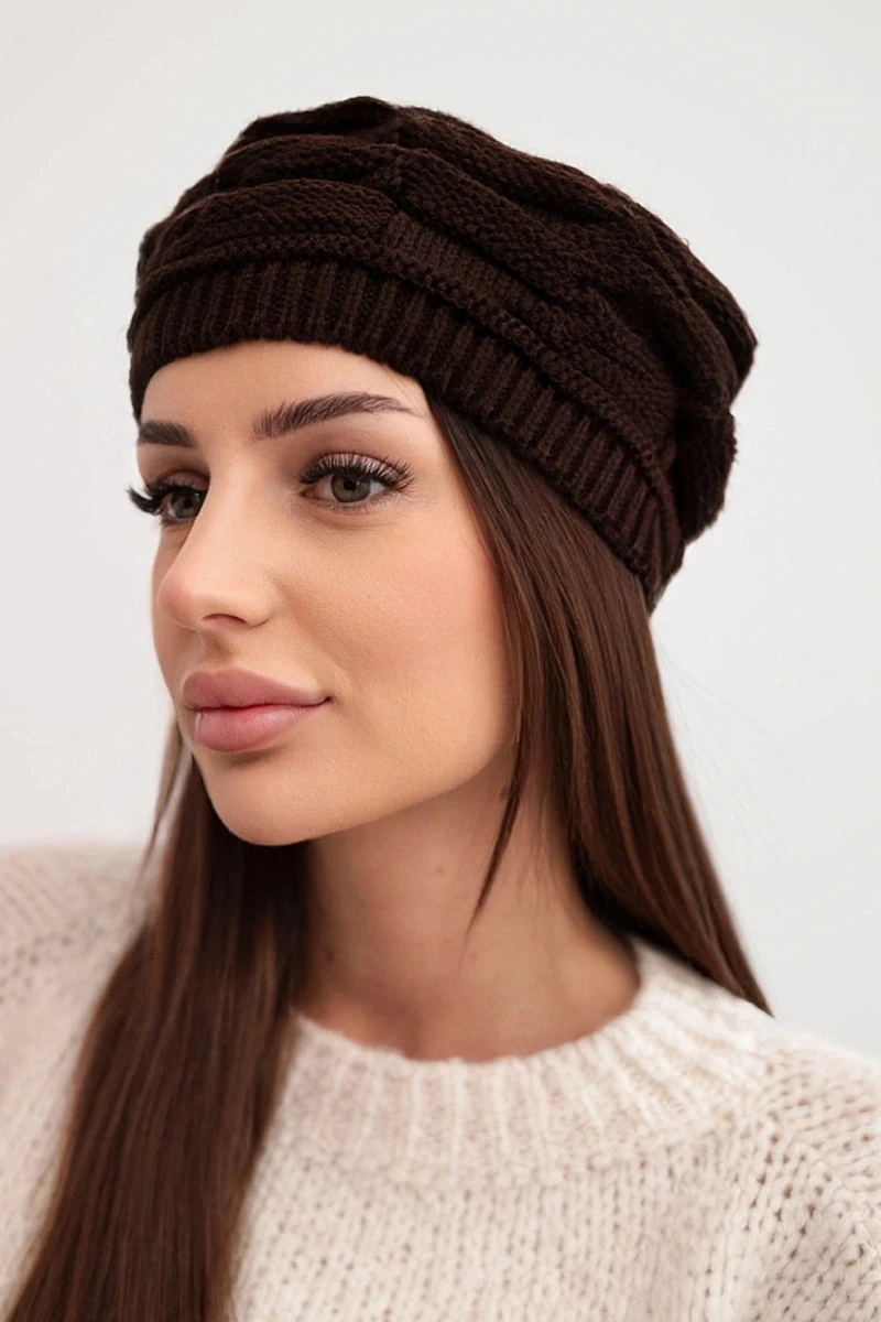 Dámská zimní čepice z vlny s ozdobným pletením a hnědá model 21878089 - K-Fashion