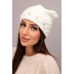 Přidání recenze k Dámská zimní čepice z vlny s ozdobnými zirkony a pleteným vzorem model 21878081 bílá - K-Fashion