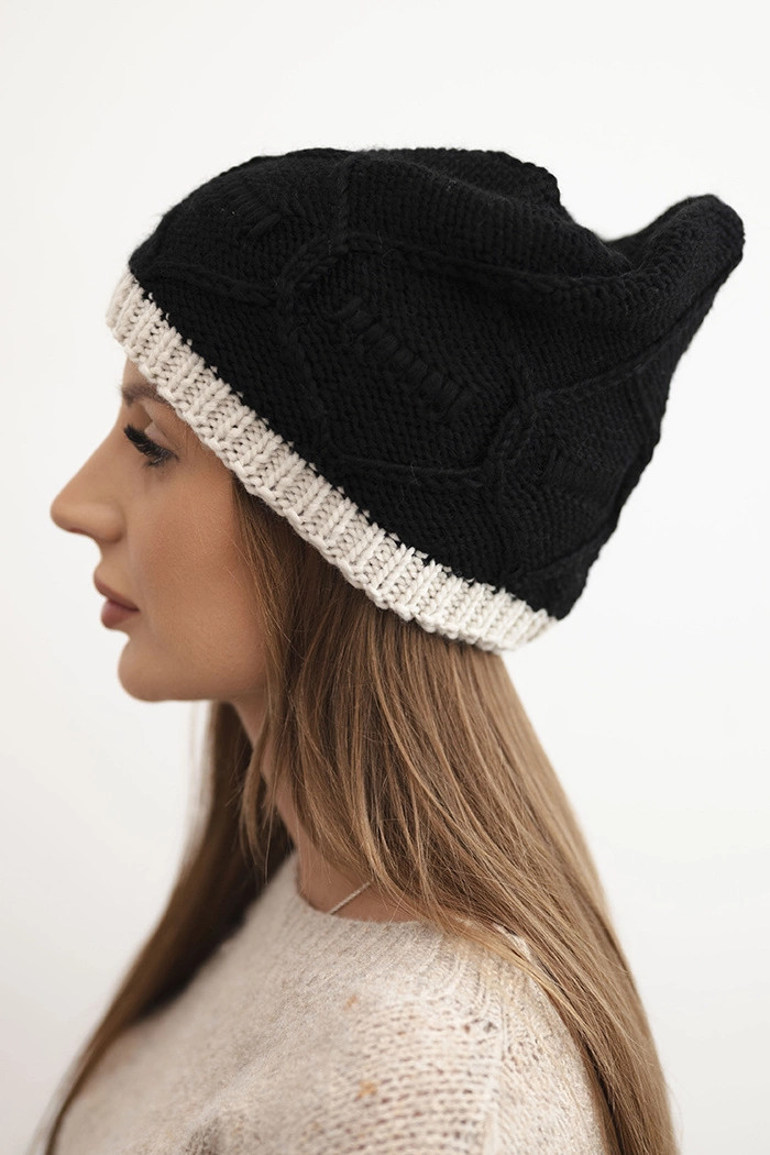 Dámská zimní čepice z vlny s proplétaným vzorem K443 černá + béžová