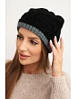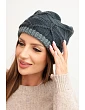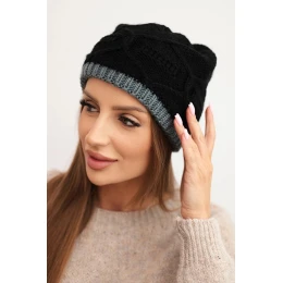 Dámská zimní čepice z vlny s proplétaným vzorem K443 černá + šedá