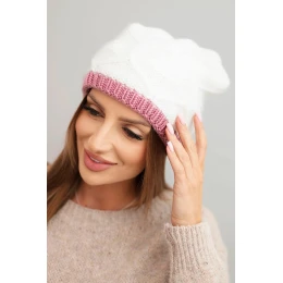Dámská zimní čepice z vlny s propleteným vzorem K443 bílá + růžová