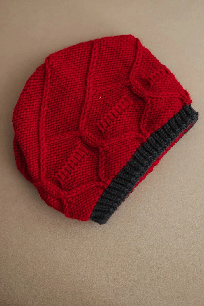 Dámská zimní čepice z vlny s propleteným vzorem K443 červená