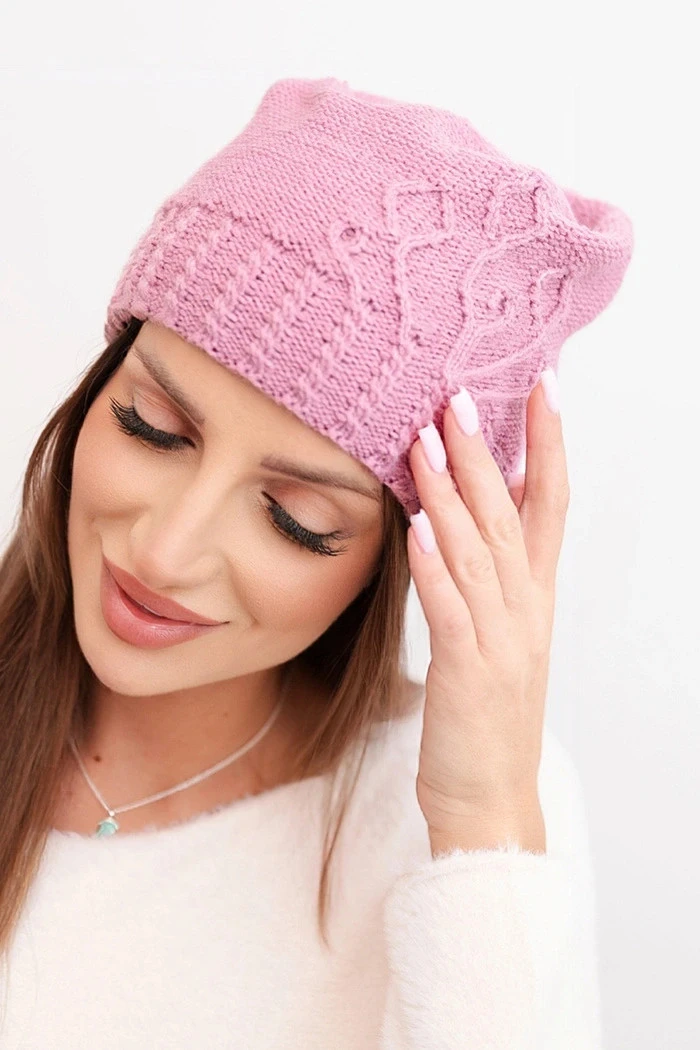 Přidání recenze k Dámská zimní čepice z vlny s tmavě růžová model 21866358 - K-Fashion