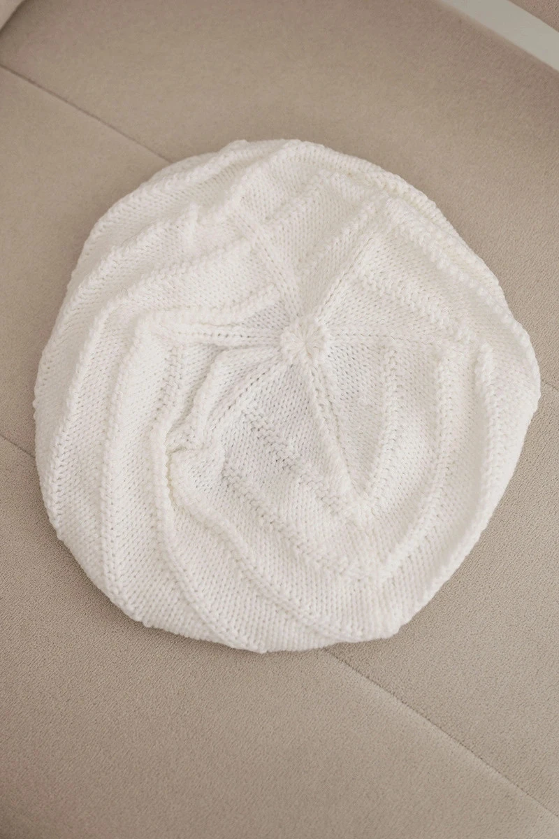 Stylová dámská čepice volného střihu typu beret, vyrobená z měkké příze s výrazným pletením. Skvěle se hodí do zimních dnů, spojuje komfort nošení s výjimečným vzhledem. Elastický lem dobře drží čepici na hlavě, zároveň netlačí.