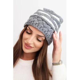 Přidání recenze k Dámská zimní čepice z vlny v hrubém pletení a pruhy K465 šedá + bílá