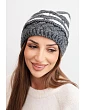 Přidání recenze k Dámská zimní čepice z vlny v hrubém úpletu a pruhy K465 grafitová + bílá