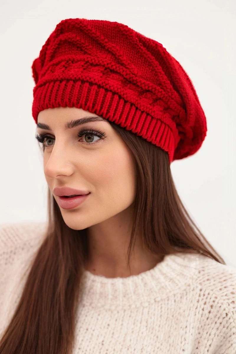 Přidání recenze k Dámská zimní čepice z vlny volného střihu s ozdobným pletením model 21878063 červená - K-Fashion