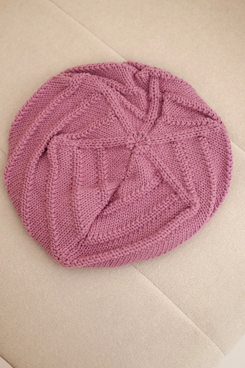 Stylová dámská čepice volného střihu typu beret, vyrobená z měkké příze s výrazným pletením. Skvěle se hodí do zimních dnů, spojuje komfort nošení s výjimečným vzhledem. Elastický lem dobře drží čepici na hlavě, zároveň netlačí.