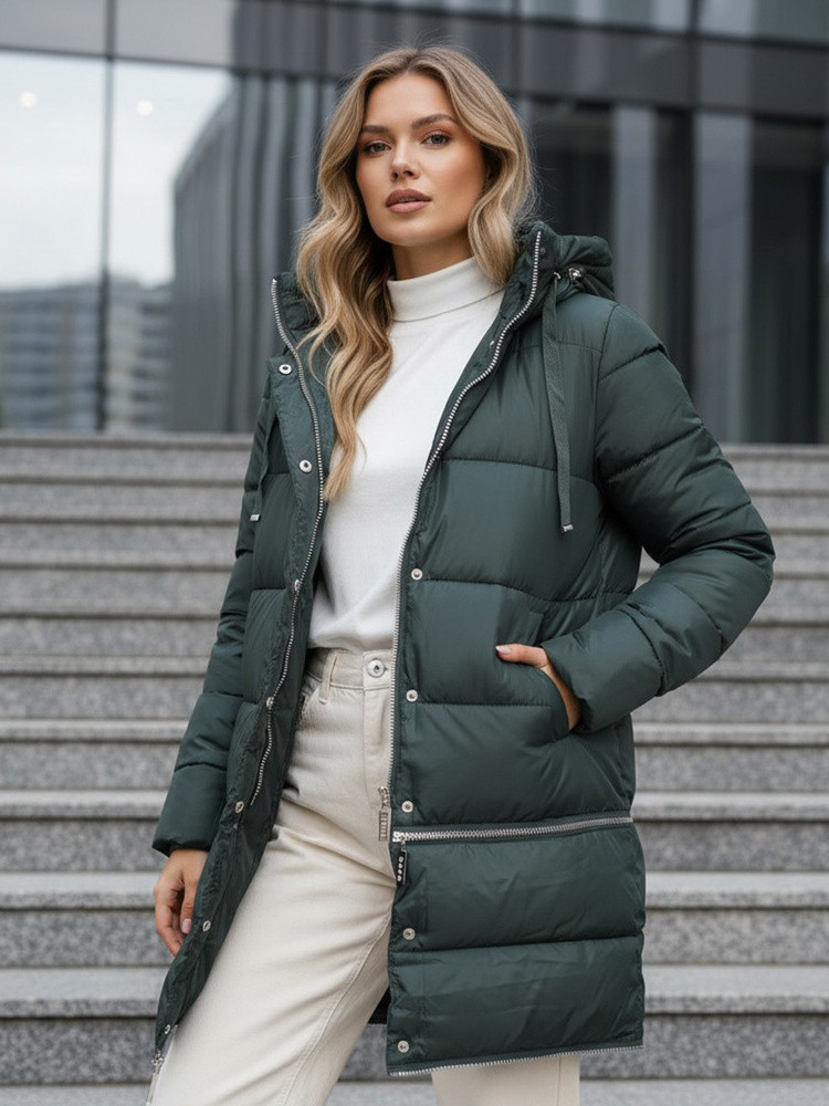 Kurtka sprawdza się w codziennych zimowych stylizacjach, a możliwość wyboru długości pozwala dopasować ją zarówno do dynamicznych, miejskich zestawów, jak i długich spacerów w chłodne dni. Krótsza wersja dobrze komponuje się z jeansami i botkami, natomiast najdłuższy wariant zapewnia maksymalną ochronę przed zimnem. Model łączy funkcjonalność, wygodę i nowoczesny wygląd, wpisując się w potrzeby sezonu jesień–zima.