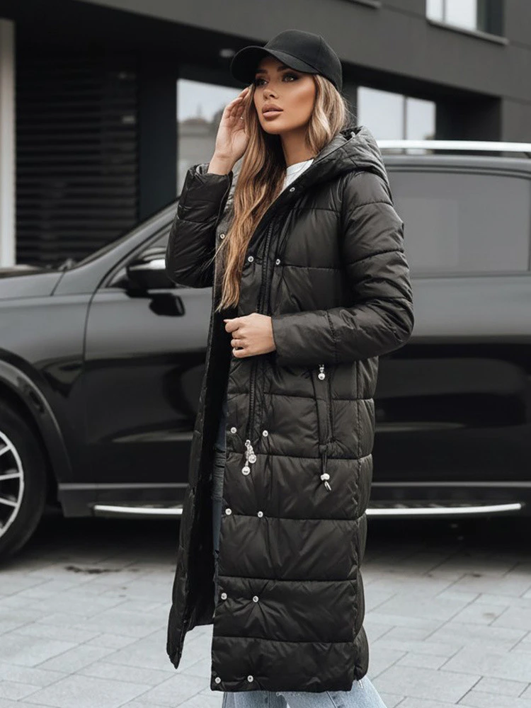 Dámská zimní dlouhá prošívaná bunda s kapucí černá Dstreet TY5482