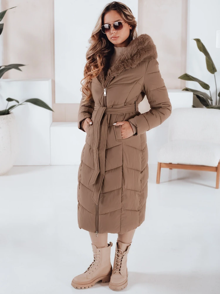 Dámská zimní dlouhá prošívaná bunda s umělou kožešinou FashionStreet TY5086