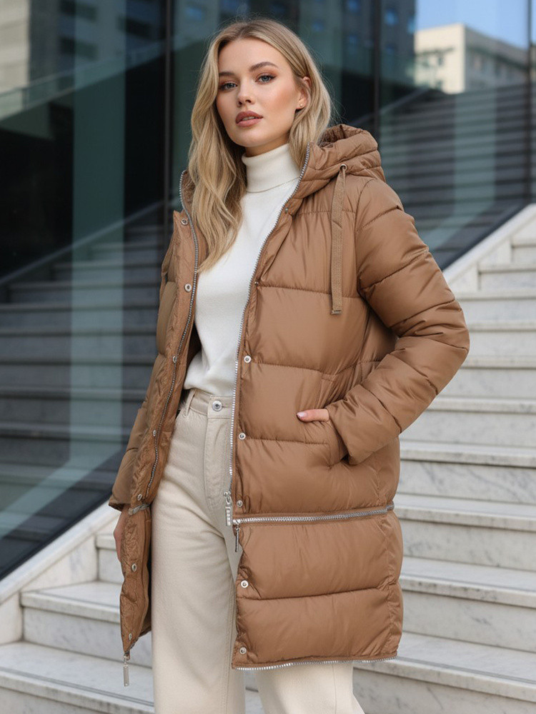 Kurtka sprawdza się w codziennych zimowych stylizacjach, a możliwość wyboru długości pozwala dopasować ją zarówno do dynamicznych, miejskich zestawów, jak i długich spacerów w chłodne dni. Krótsza wersja dobrze komponuje się z jeansami i botkami, natomiast najdłuższy wariant zapewnia maksymalną ochronę przed zimnem. Model łączy funkcjonalność, wygodę i nowoczesny wygląd, wpisując się w potrzeby sezonu jesień–zima.