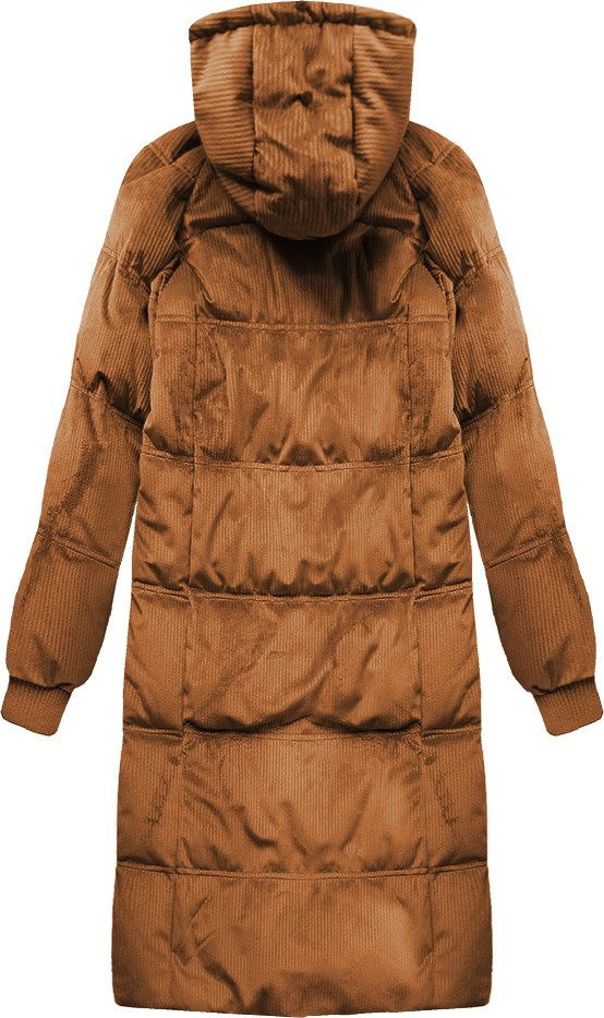 Dámská zimní manšestrová bunda v karamelové barvě s kapucí (7763)