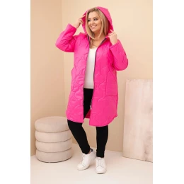 Dámská zimní péřová bunda Plus Size s kapucí neonově růžová