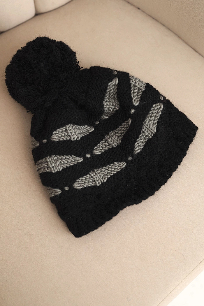 Dámská zimní pletená čepice s bambulí a copánkovým vzorem K466 černá
