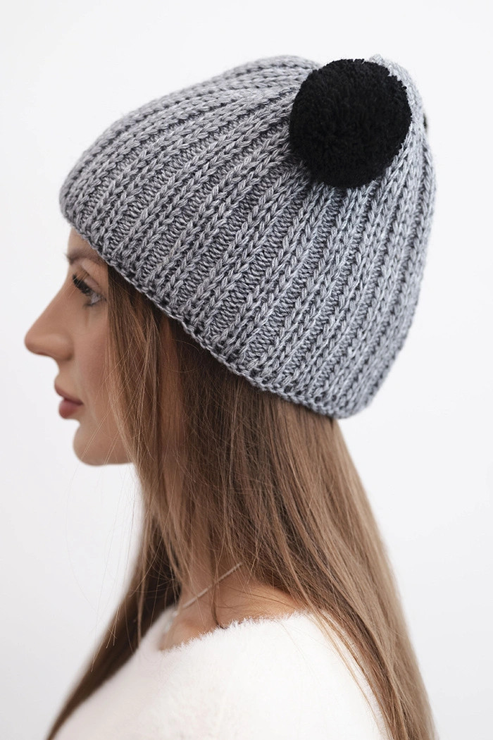 Přidání recenze k Dámská zimní pletená čepice s bambulí K433 tmavě šedá