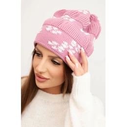 Dámská zimní pletená čepice se vzorem sněhových vloček K463 tmavě růžová