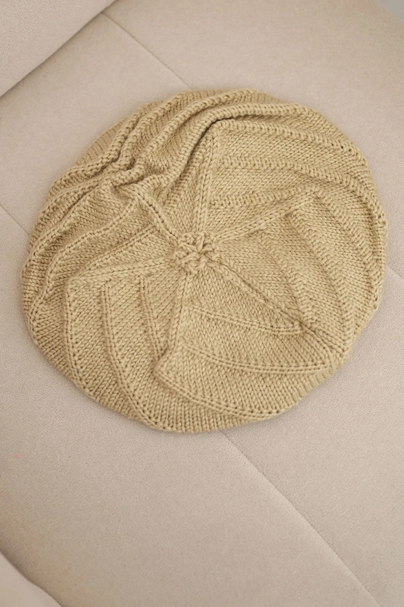 Stylová dámská čepice volného střihu typu beret, vyrobená z měkké příze s výrazným pletením. Skvěle se hodí do zimních dnů, spojuje komfort nošení s výjimečným vzhledem. Elastický lem dobře drží čepici na hlavě, zároveň netlačí.
