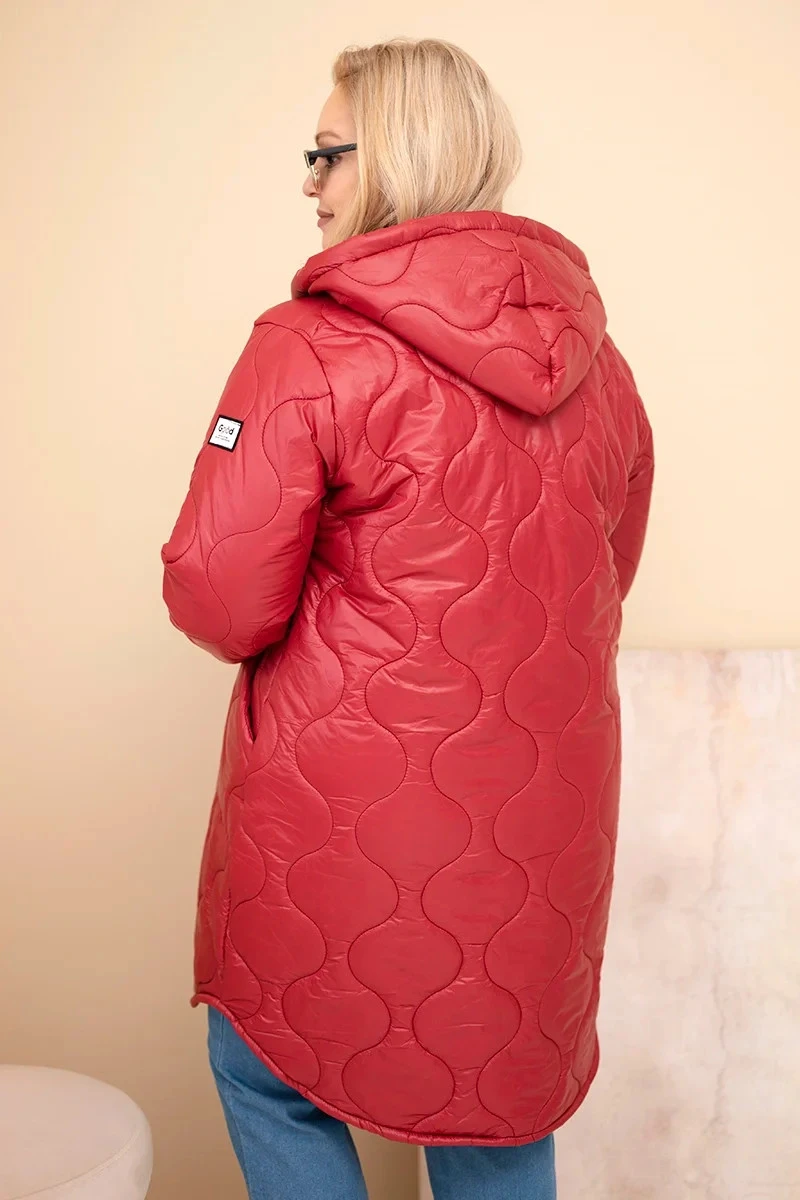 • Dámská zimní prošívaná bunda Plus Size s kapucí bordová