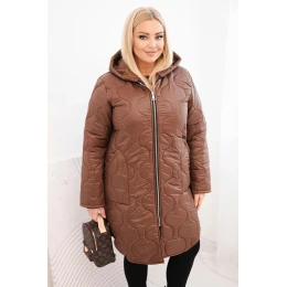 Dámská zimní prošívaná bunda Plus Size s kapucí čokoládová