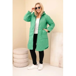 Dámská zimní prošívaná bunda Plus Size s kapucí světle zelená