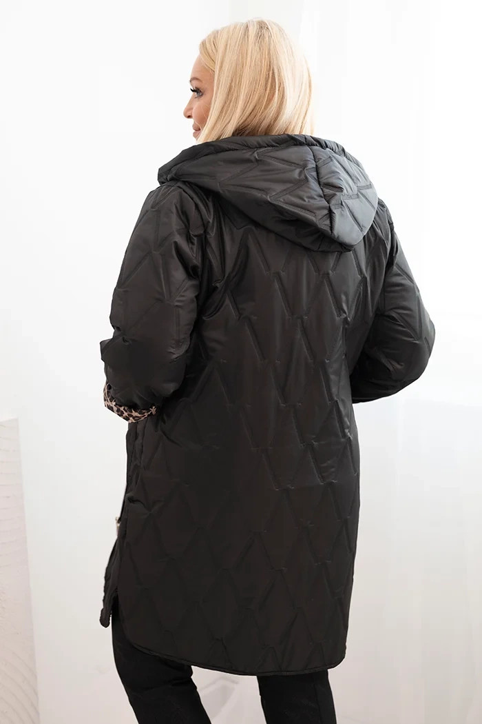 Módní a funkční dámská bunda Plus Size je vynikající volba na chladnější dny. Model se vyznačuje originální podšívkou s leopardím vzorem, která efektivně vypadá po ohrnutí rukávů nebo rozepnutí kapuce. Díky prošívané struktuře bunda vypadá stylově a moderně, a zároveň poskytuje odpovídající teplo.
