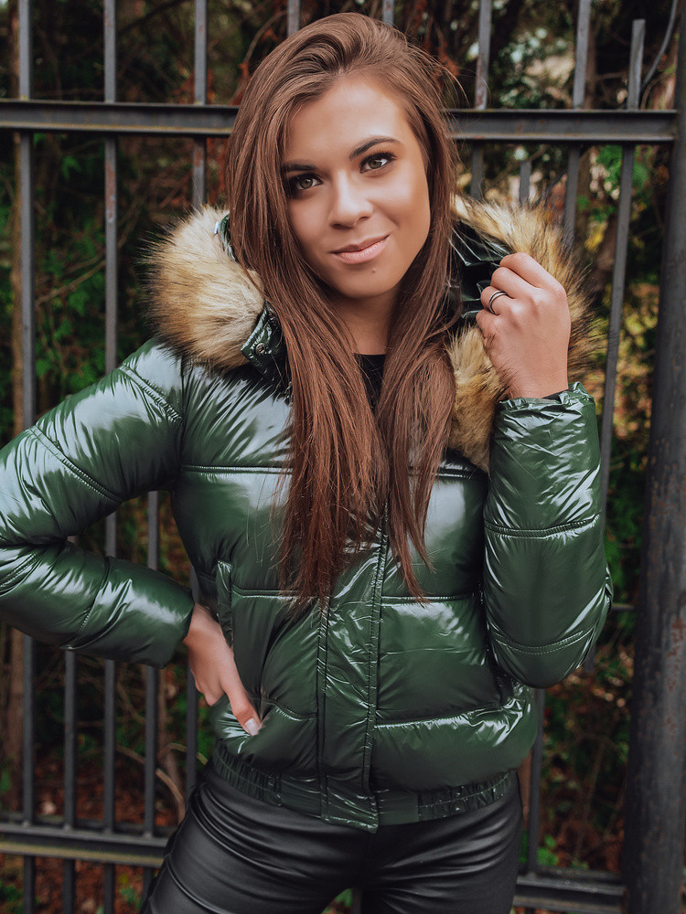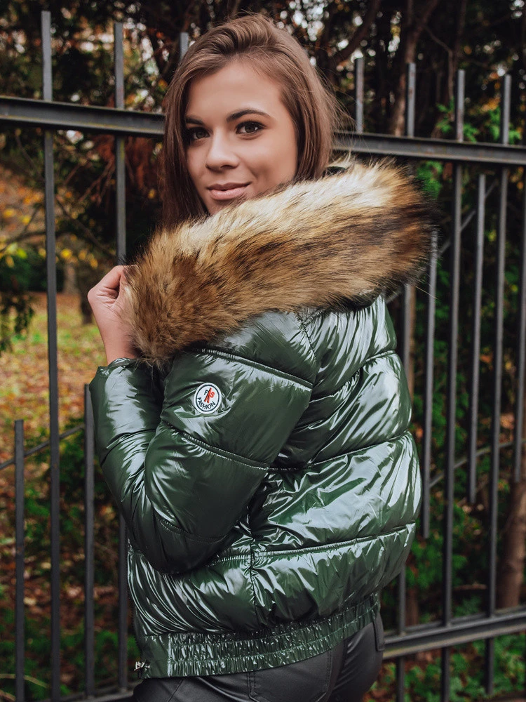 Dámská zimní prošívaná krátká bunda zelená model 21963982 - Dstreet