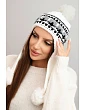 Dámská zimní vlnená čapka s ušnicemi a bambulkami K436 bílá