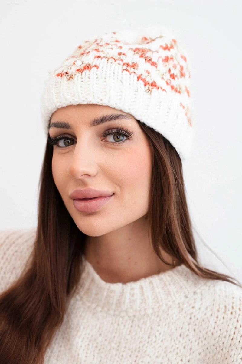 Teplá a efektní zimní čepice s jedinečným barevným vzorem na černém pozadí. Vyznačuje se kontrastní kombinací barev – oranžové, bílé a šedé – které jí dodávají moderní, mladistvý charakter. Silný, elastický lem zajišťuje pohodlné nošení a dodatečnou ochranu před chladem.