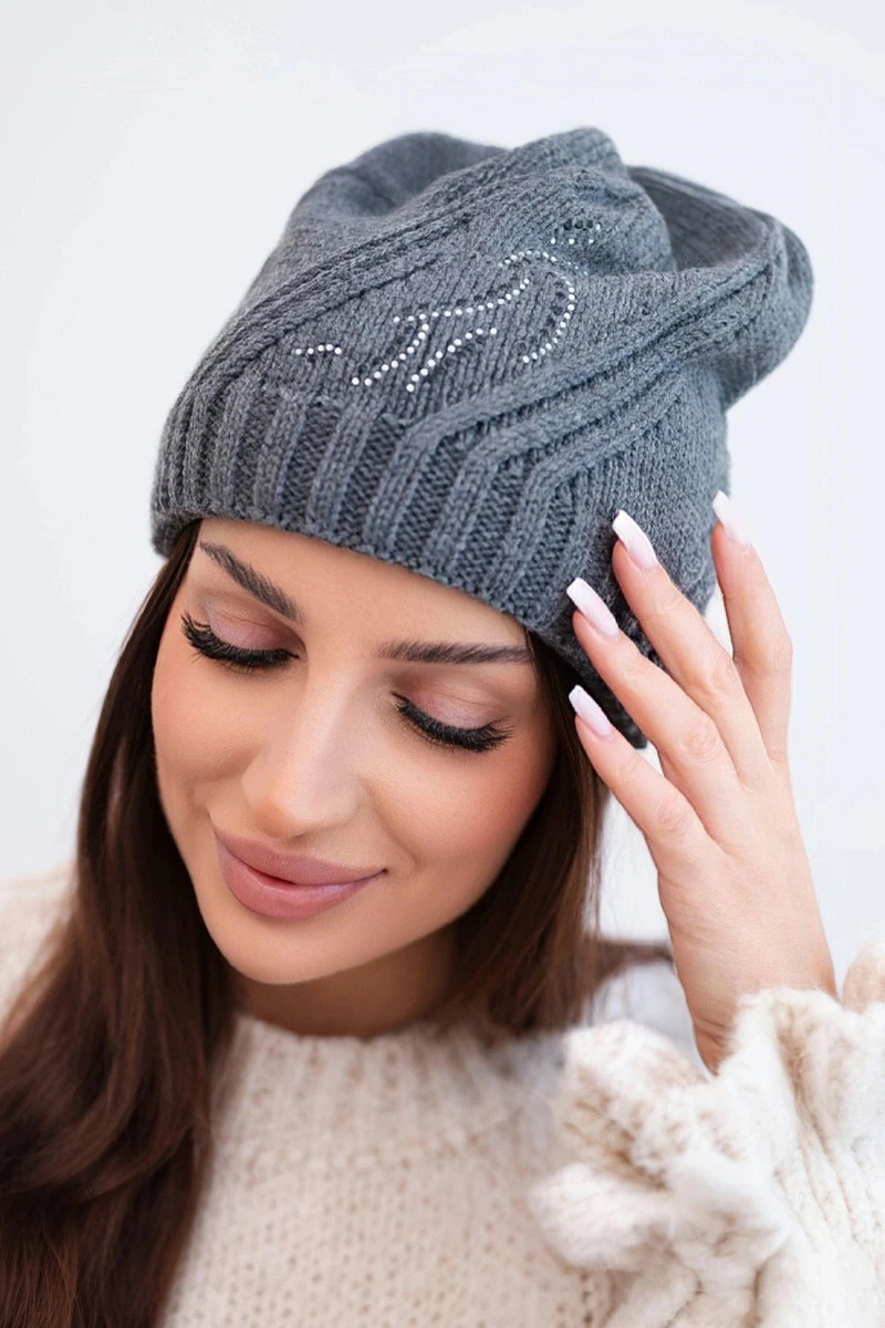 Přidání recenze k Dámská zimní vlněná čepice s ozdobnými krystalky K399 černá