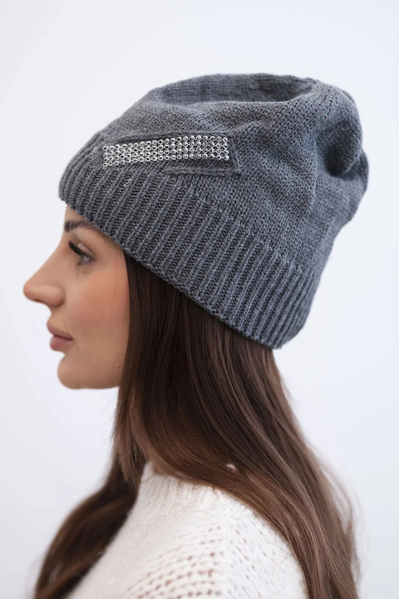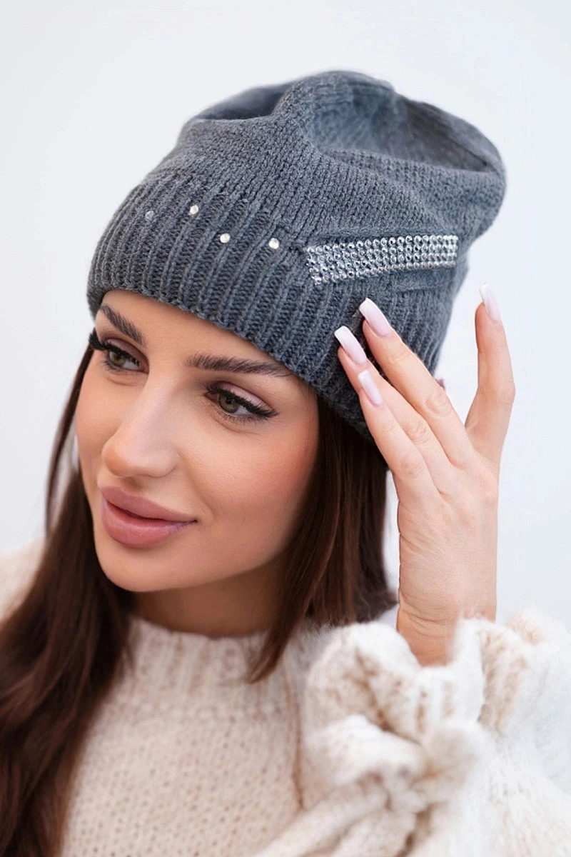 Přidání recenze k Dámská zimní vlněná čepice s ozdobnými krystalky K399 černá