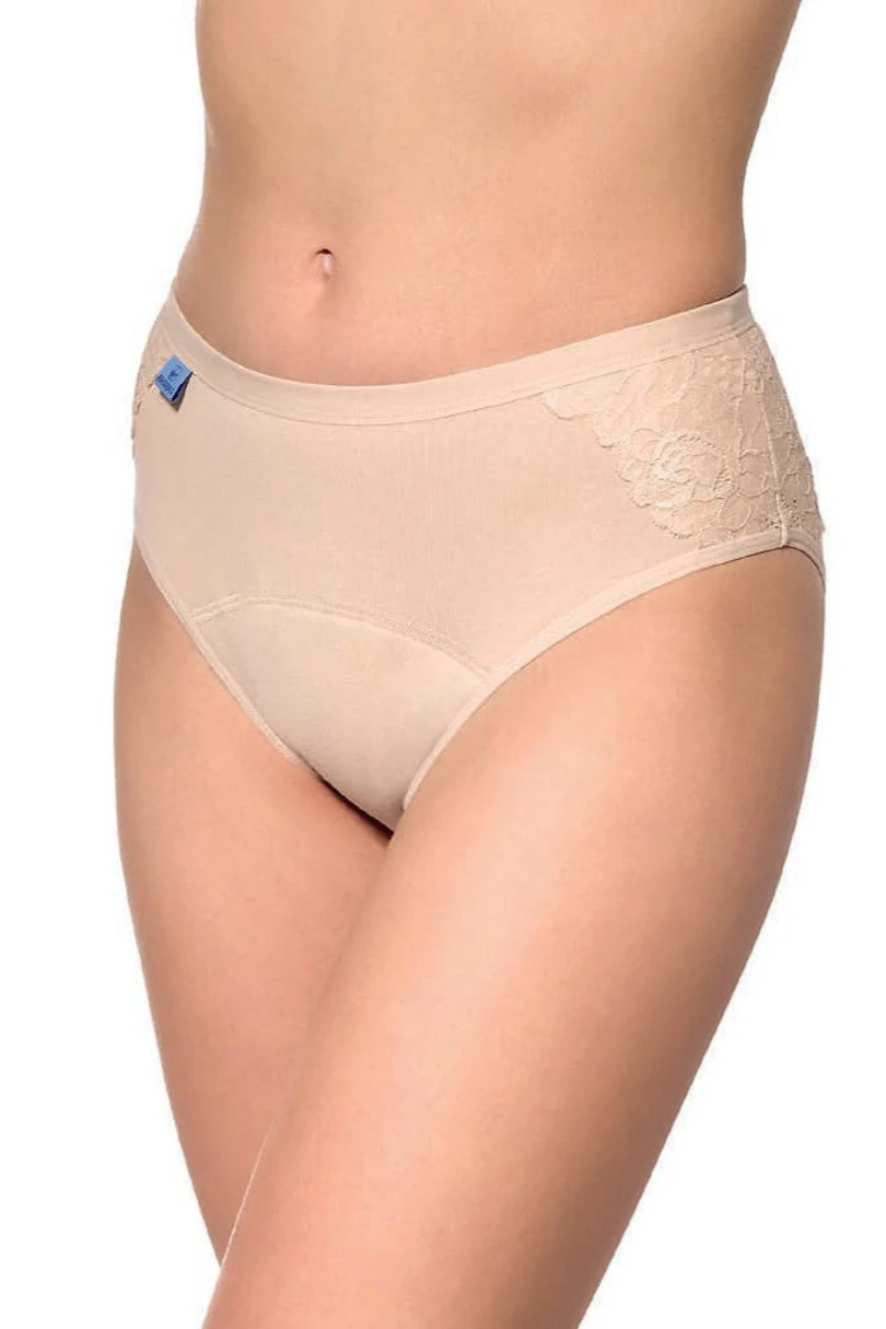 Figi damskie z funkcją chłonną to idealne rozwiązanie dla kobiet z problemem nietrzymania moczu, które cenią sobie nie tylko funkcjonalność, ale również estetykę. Wykonane z antybakteryjnej, oddychającej bawełny z dodatkiem elastanu, zapewniają komfort i świeżość przez cały dzień. Ich czterowarstwowa konstrukcja skutecznie chroni przed przesiąkaniem i neutralizuje nieprzyjemne zapachy, a pełny, zabudowany krój gwarantuje idealne dopasowanie. Dodatkową zaletą są eleganckie, koronkowe wstawki po bokach, które nadają modelowi kobiecego i subtelnego charakteru. Figi zachowują swoje właściwości aż do 100 prań.