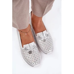 Dámské ažurové polobotky z přírodní kůže – stříbrné
