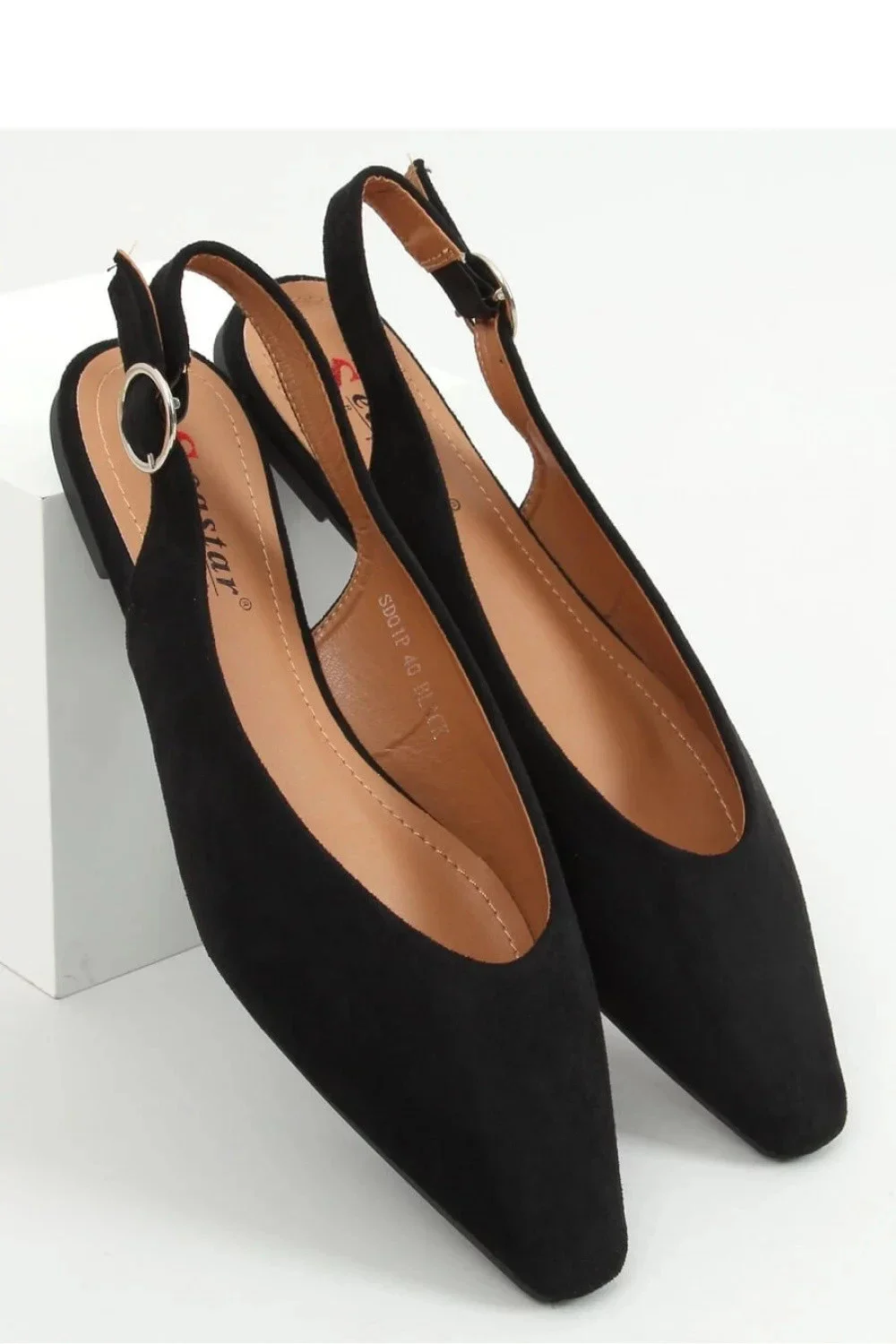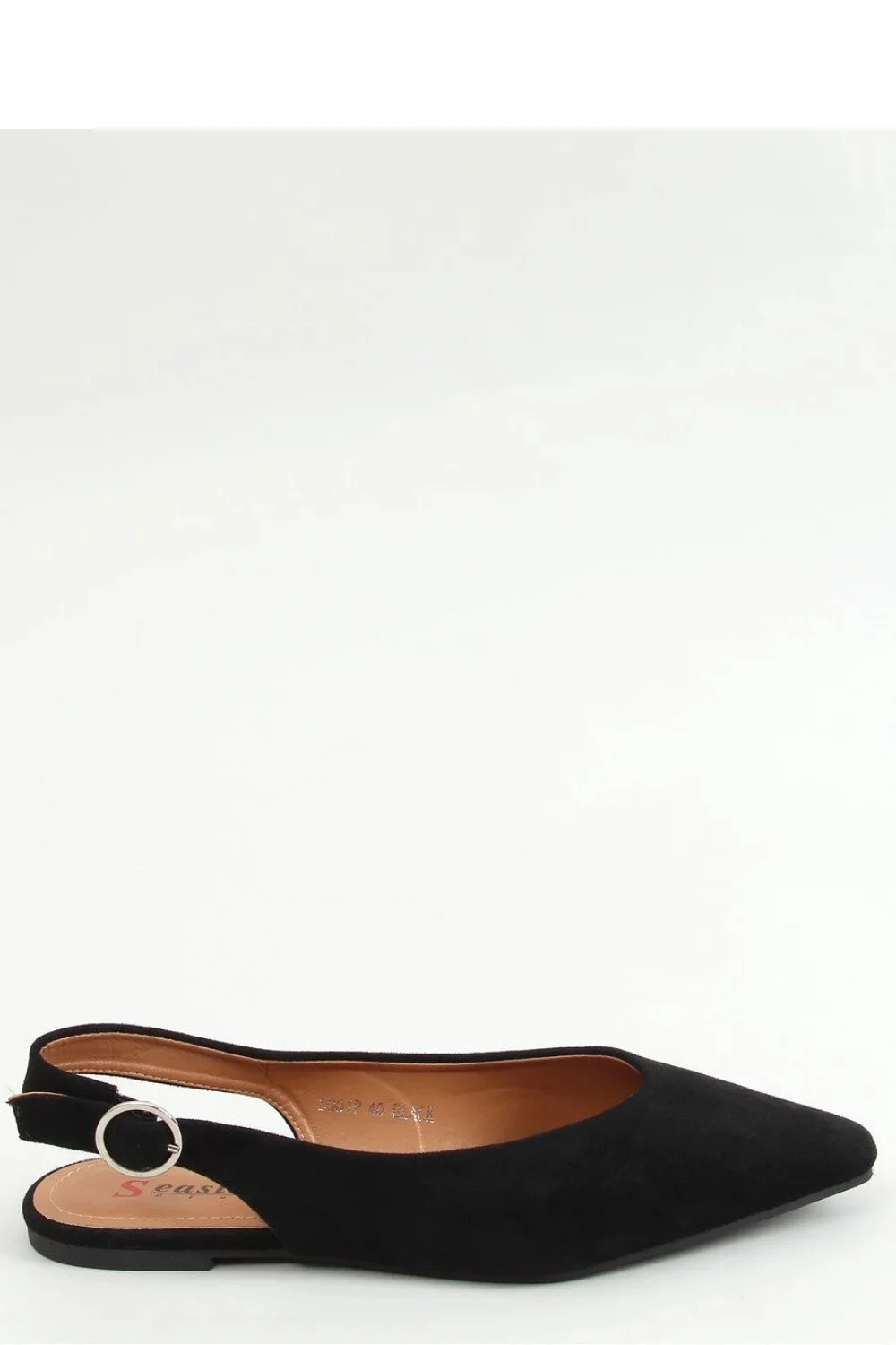 Dámské semišové baleríny s otevřeným podpatkem. Model má nejmódnější střih s hranatým nosem a ozdobnou sponou na boku. Určitě budou ozdobou vašeho stylingu: ) Tyto boty si zamilujete! Vnější materiál - ekologický semiš.