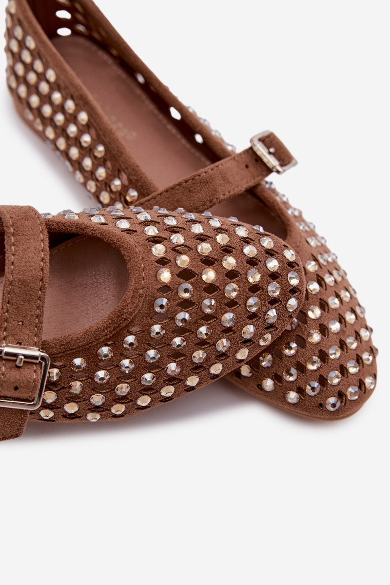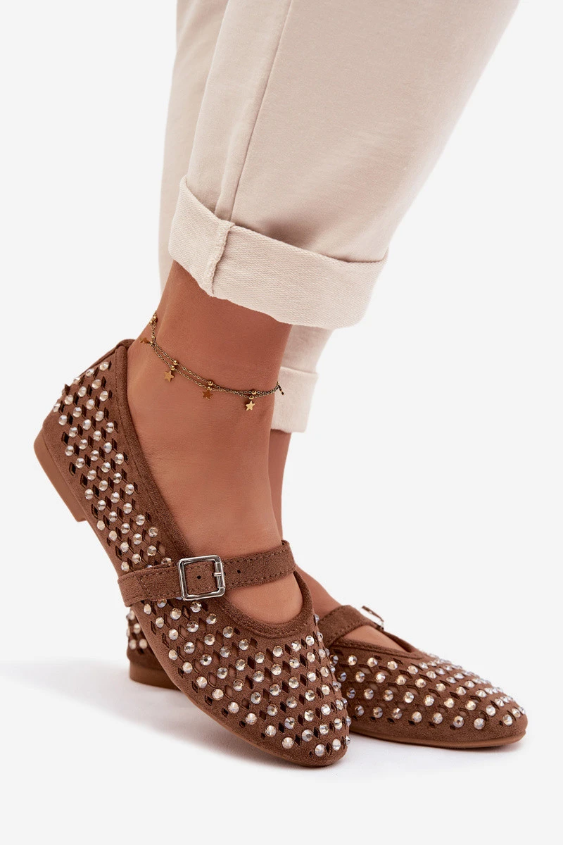 Dámské baleríny s otevřeným vzorem s kamínky a páskem Hnědé Wilvessa