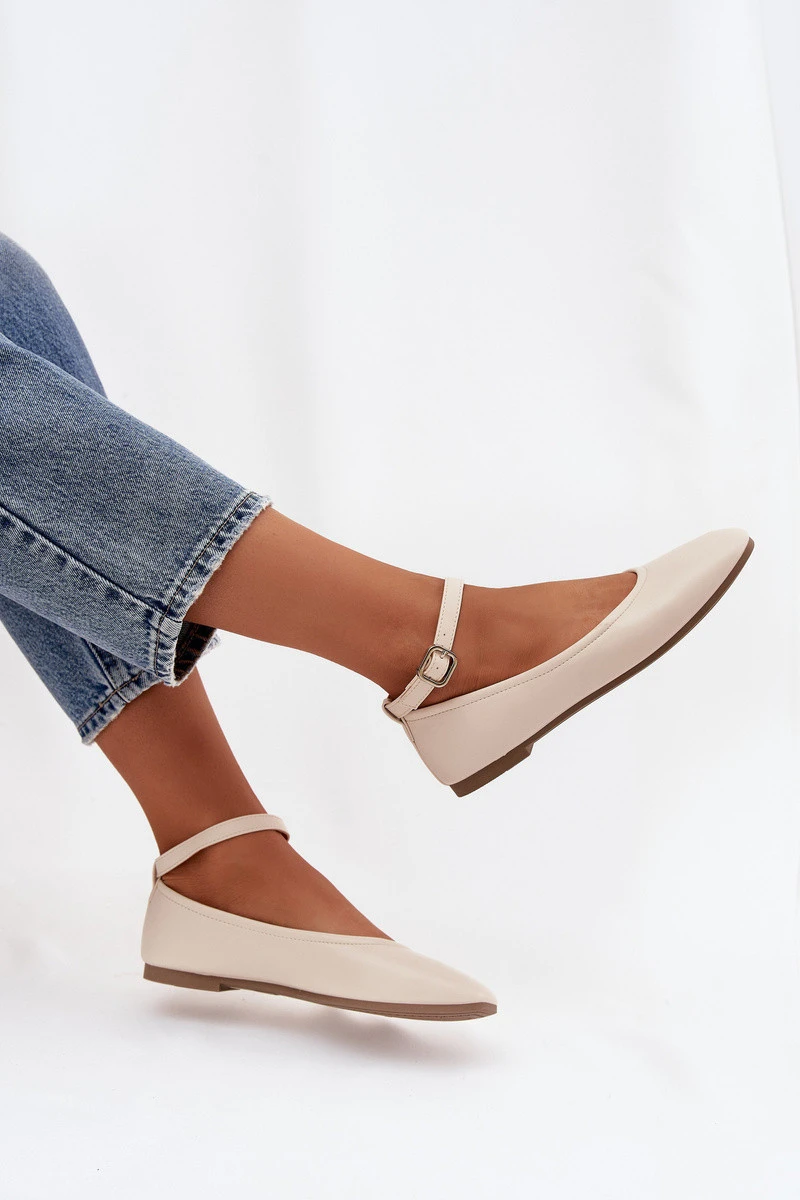 Dámské baleríny s páskem a sponou béžové model 21747629 - Boto
