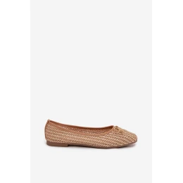 Dámské baleríny s pletením a mašlí Belirra – camel
