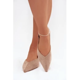 Dámské baleríny vyrobené z ekologické semiše jsou stylovou a pohodlnou volbou na každý den. Model na ploché podrážce zaručuje komfort a špičaté nosky dodávají eleganci a jemně zeštíhlují nohu. V zadní části je nastavitelné pásko zakončené velkou dekorativní přezkou, která přitahuje pozornost a je módním akcentem. Tyto baleríny jsou ideální pro ženské, moderní outfity. Při výběru velikosti se řiďte tabulkou velikostí.